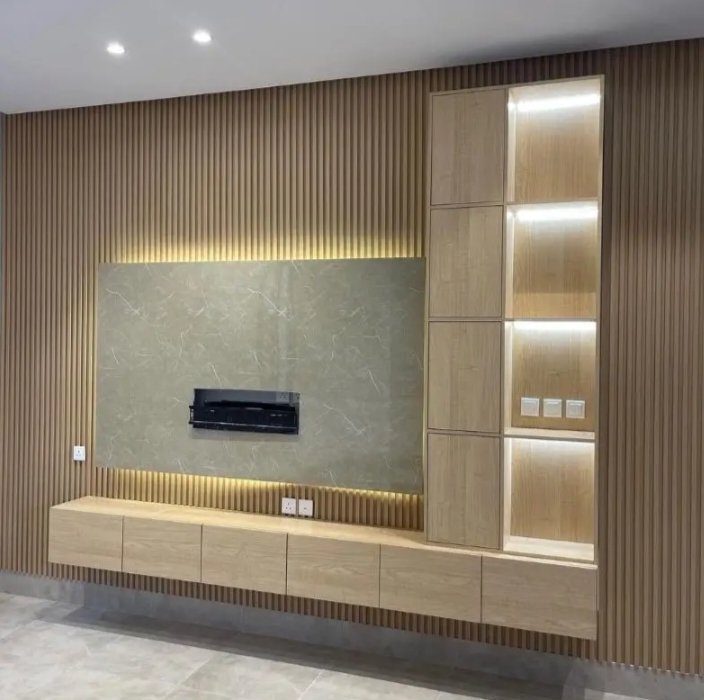 للحصول على تصميم أنيق وعصري يبرز جمال شاشة التلفاز لديك فمعلم تركيب ديكور شاشات التلفزيون بجده، يقدم لكم أفضل الحلول التي تجمع بين التصميم الفاخر، وجودة المواد، والتنفيذ الاحترافي لديكور التلفزيون بجده، سواء كنت ترغب في ديكور شاشة بألواح بديل الخشب، أو ديكورات مضيئة لشاشات البلازما في جده، فنحن نوفر لك كافة الخيارات.
